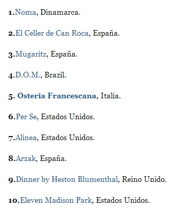El danés Noma se coronó como el mejor restaurante del mundo por tercer año consecutivo. Era lo esperado en una nueva edición de los «Oscar» de la cocina, que demostró el buen momento de los fogones españoles: El Celler de Can Roca y Mugaritz repitieron en la segunda y tercera posición.